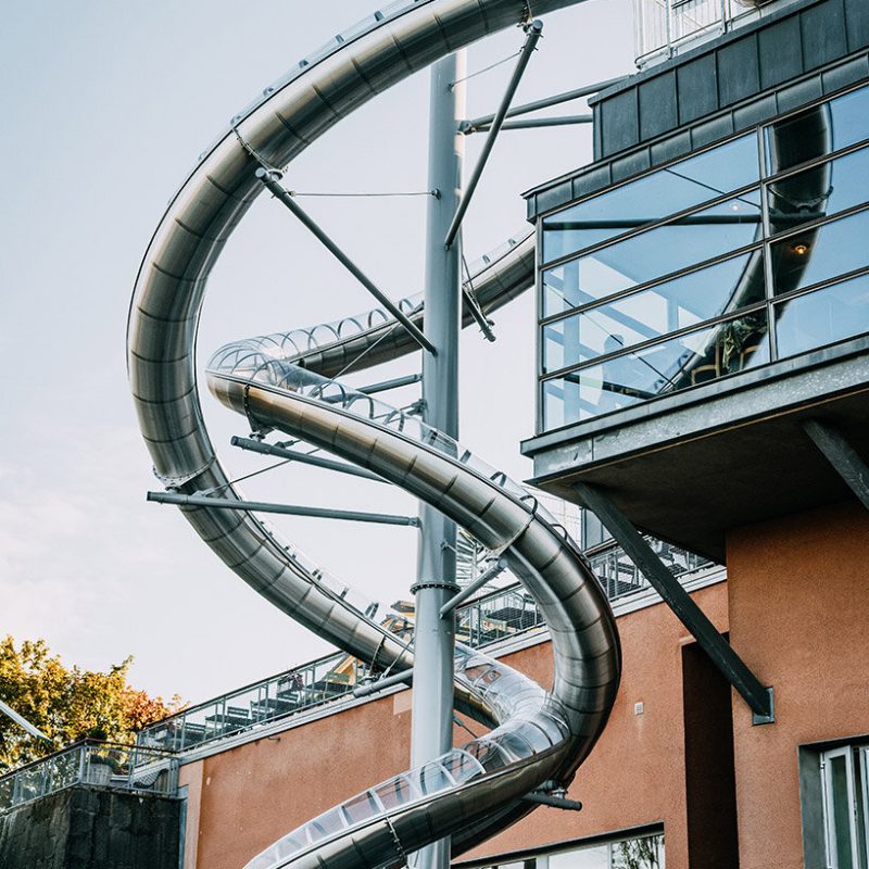 carsten höller’s mirrored slides spiral down facade of moderna museet in stockholm Design carsten höller’s mirrored slides spiral down facade of moderna museet in stockholm