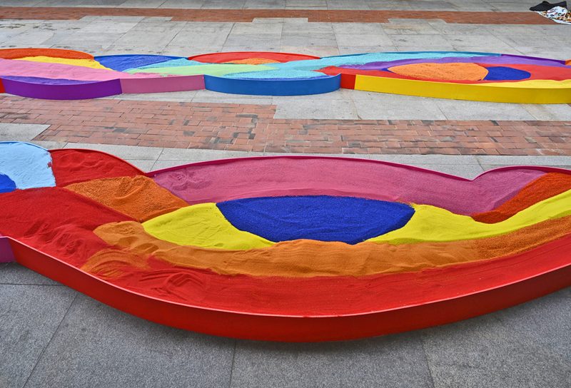 tons of colored aggregates mix together to form color path public art installation in poland Design tons of colored aggregates mix together to form color path public art installation in poland