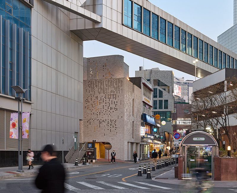 perforated brickwork forms pixelated pattern upon restored seoul building by NOMAL Design perforated brickwork forms pixelated pattern upon restored seoul building by NOMAL